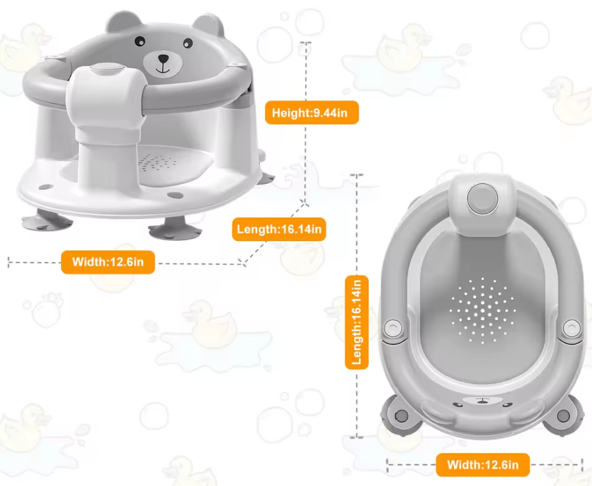 Make bath time safer, easier, and more enjoyable with the Baby Bath Chair, designed to support your little one as they begin to sit and explore. Featuring a non-slip base and strong suction cups, it keeps the seat stable in the tub. Made from durable, baby safe materials.