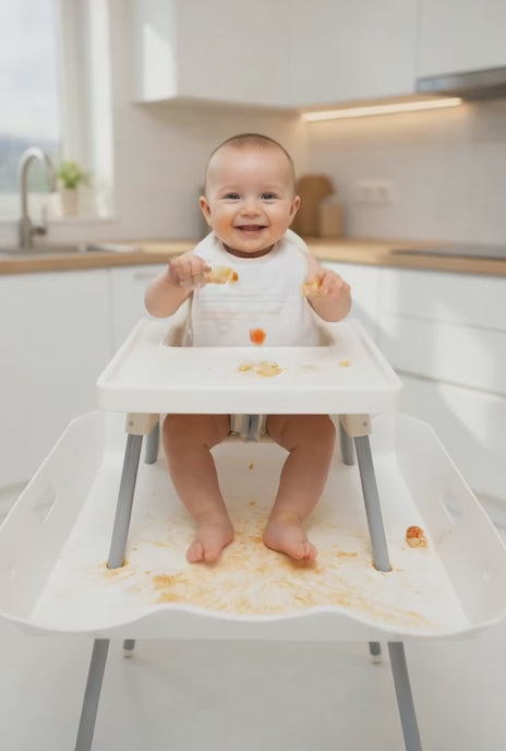 The Baby Food Catcher helps keep your floor clean while your baby learns to eat independently. When babies are introduced to food, dropping and throwing food is part of the learning process. This catcher sits under the high chair to collect crumbs and dropped food before it reaches the floor. It makes mealtime less messy and cleanup quick and easy. Size: 78 × 88 cm