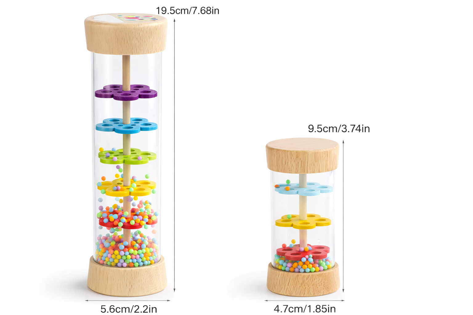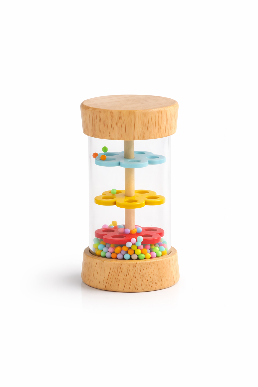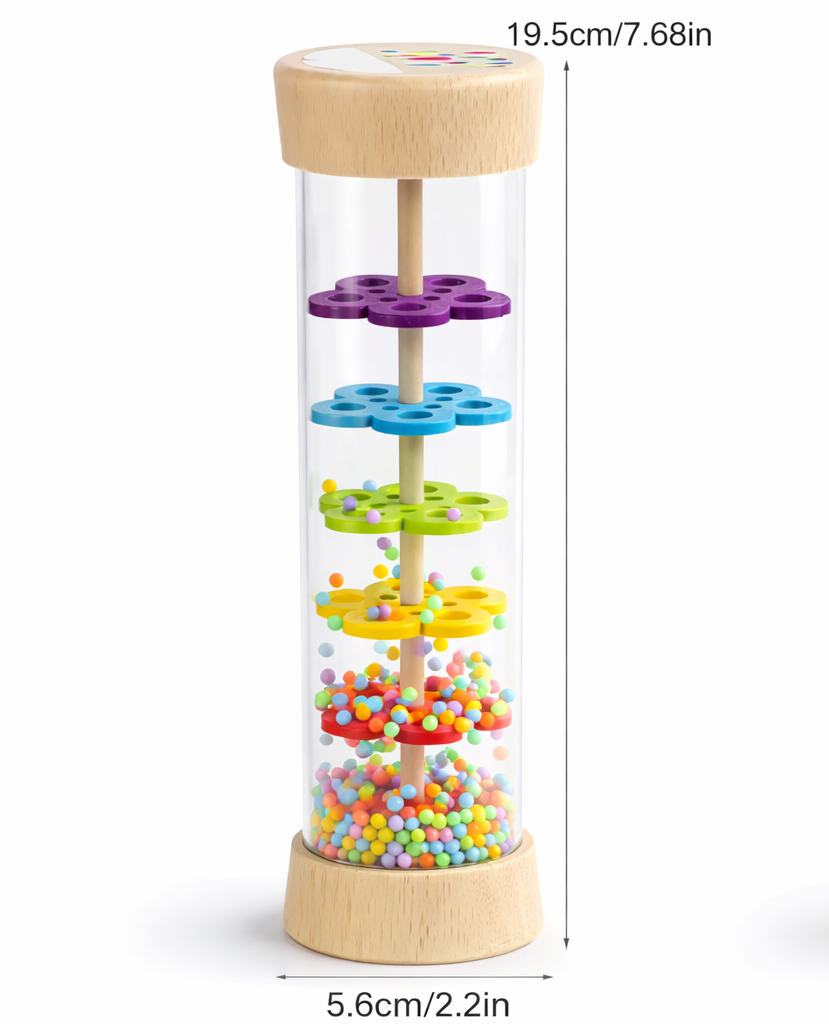 Soothe and engage your baby with the Rainmaker Sensory Toy, designed to create a gentle, calming rain sound with every shake. Its unique trumpet-like shape is filled with small bells and sand, producing soft, crisp sounds and subtle vibrations that stimulate your baby's senses. Perfect for early sensory development.